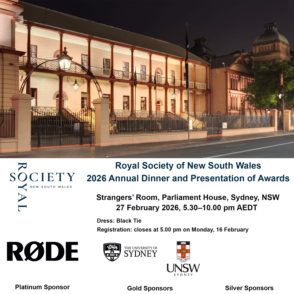 The Society’s Annual Dinner and Award Presentations will be held at Parliament House, Sydney, on Friday, 27 February 2026, in the Strangers’ Room, the principal dining room in the building with expansive views across the Domain to the Harbour.